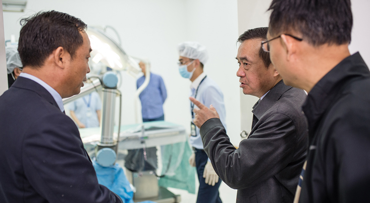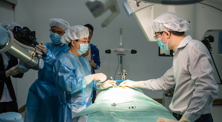 ↑ 第一位:坐鎮(zhèn)南京普愛精準(zhǔn)手術(shù)室內(nèi)的南京醫(yī)科大學(xué)副校長李建清教授