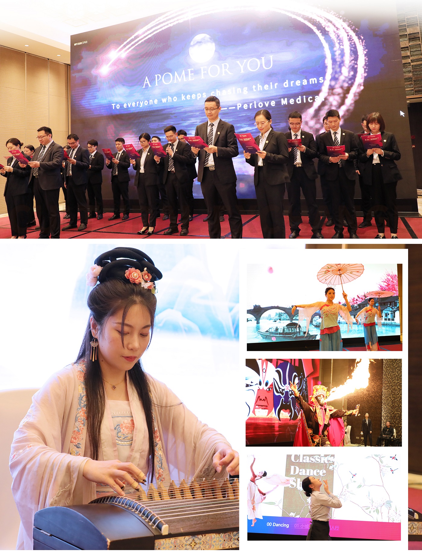 交流晚宴上,普愛(ài)醫(yī)療國(guó)際貿(mào)易部門的同事們呈現(xiàn)了一段中英雙語(yǔ)的詩(shī)歌朗誦《春江花月夜》,將中國(guó)古典詩(shī)詞的優(yōu)美意境傳遞給了每一位聽(tīng)眾。中國(guó)古風(fēng)舞蹈、中國(guó)傳統(tǒng)樂(lè)器演奏和神奇的川劇變臉表演,引得現(xiàn)場(chǎng)客戶陣陣歡呼。
