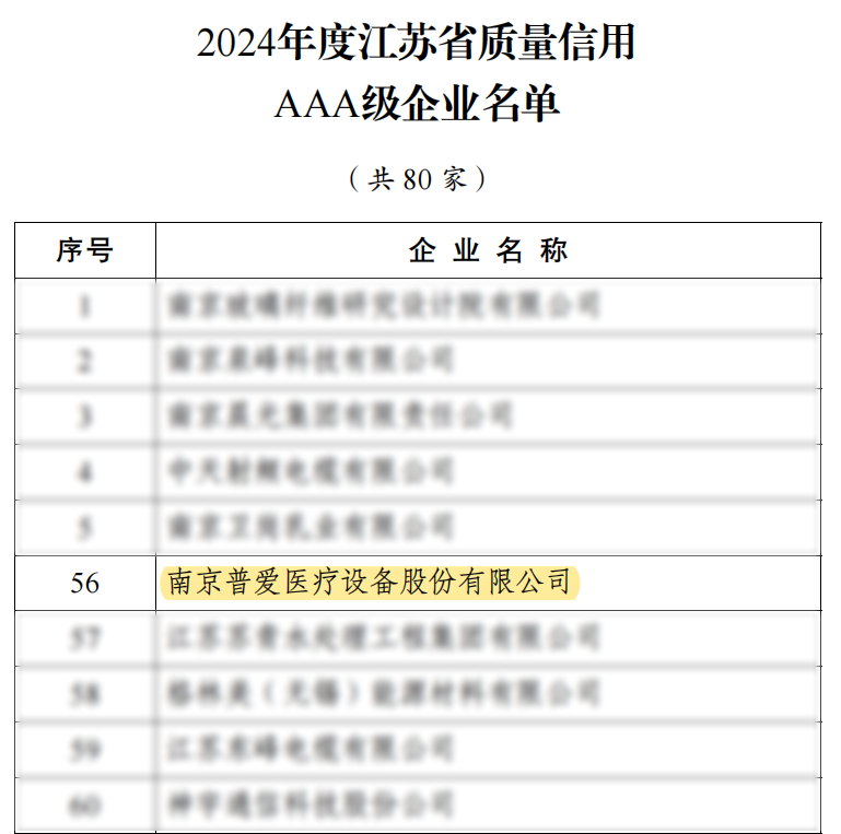11月25日,江蘇省市場監(jiān)管局發(fā)布了《2024年度江蘇省質(zhì)量信用AAA級企業(yè)公示名單》,普愛醫(yī)療以優(yōu)秀的產(chǎn)品質(zhì)量、穩(wěn)定的運營能力及良好的社會責任實踐成功入選。